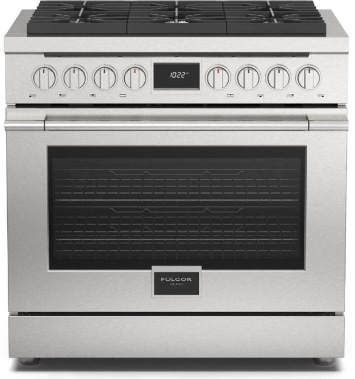 The 36" Dual Fuel range features a combination of three Crescendo burners, and three high powered sealed burners offering great performance and value. The oven features a generous 5.7 cubic feet capacity with dual convection and self-cleaning functions.